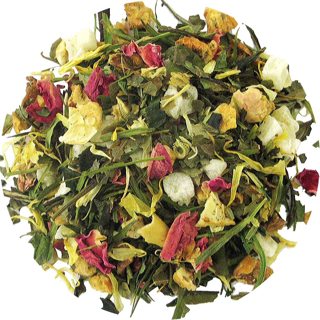 Een cafeïnevrije witte theeblend met appel, ananas, kruizemunt, bamboeblad en bramenblad. Fruitig, fris en aromatisch – heerlijk warm of als verfrissende ijsthee voor elk moment van de dag.